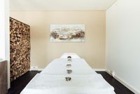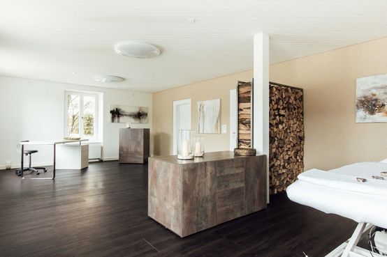 Der Raum ist komplett eingerichtet mit elektr. Liege, Frotteetücher etc. Alles zur Mitbenutzung.