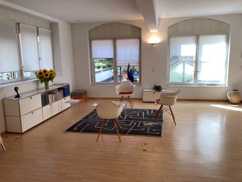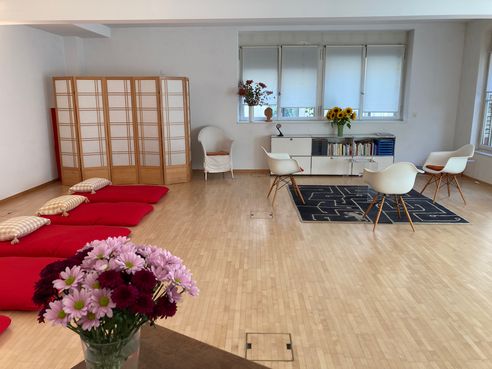 Wegen Reduktion meiner langjährigen Tätigkeit vermiete ich meinen schönen, grossen, hellen Raum teilweise. An bester Lage nähe Bellevue in einer Oase der Ruhe. Der Raum bietet genügend Platz für Yogaklassen, Workshops, Seminare. Ideal auch für Coaching etc. Mietbar in fixer Monatsmiete: Mo 8:00 - 16:00, Di 8:00 - 17:00, Mi-abend ab 18:00. Mietbar tageweise: Sa, So. Mit schönem Innenhof für gemütliche Pausen.