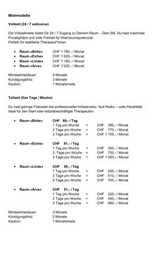 Ein idealer Arbeitsplatz besonders für Fachpersonen, die Wert auf Professionalität, Diskretion und eine ästhetisch ansprechende Arbeitsumgebung legen.
