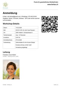 Vorbereitung: Geburtsdaten für die Human-Design-Kurzauswertung werden nach Anmeldung abgefragt.