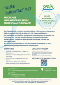 Weitere Informationen zu den Info-Abenden, dem Lehrgang und für die Anmeldung finden Sie unter https://sebim.ch/ausbildung/modulare-grundausbildung-in-bioresonanztherapie/